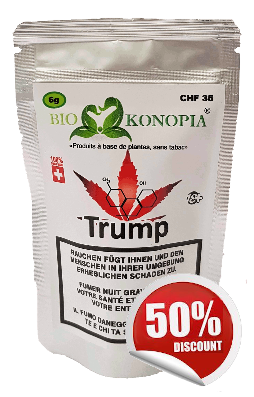Trump Greenhouse wurde im Kanton Waadt im Treibhaus gezüchtet und enthält einen CBD Anteil von ca. 15% und einen THC Wert unter 1% und ist erhältlich in den praktischen Druckverschlussbeutel zu 6g!